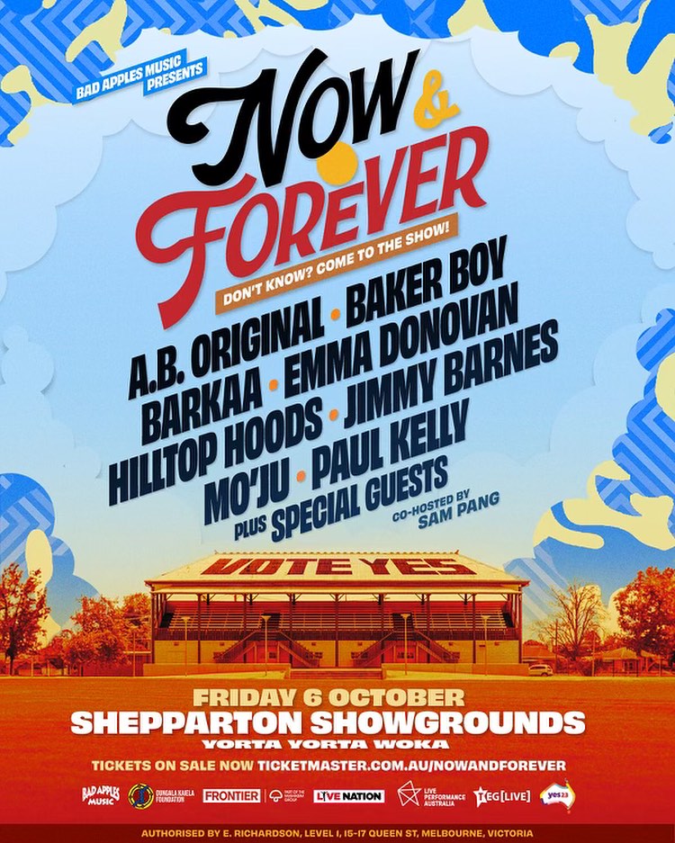 “We have a once-in-a-generation opportunity to write our future together, and the artists on the bill have signed up for that. This is about celebration, inclusivity, solidarity, positivity and listening, as much as it is about a voice. In that spirit, everyone is welcome to the show – even the undecided voters. So come join me and my friends on Yorta-Yorta country!”